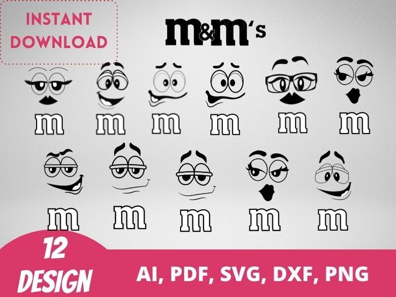Instant Download MM Faces SVG Cut files MM SVG for Cricut and Silhouette M and M Logo and the letter M SVG PNG 300dpi EPS DXF for all cutting machines.